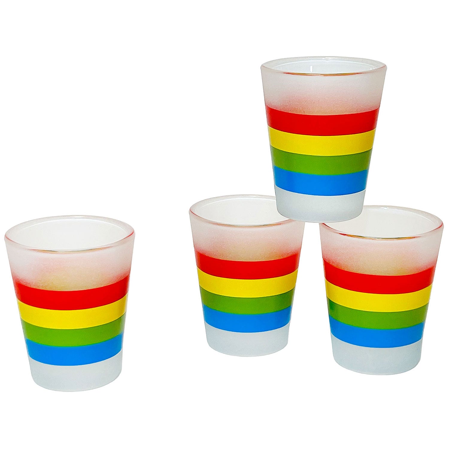 Cha-Cha Shot Glasses, Glass, Frosted, Rainbow, 4 Piece